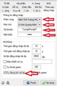 - B5.Auto Login: Đảm bảo bạn đã click chọn vào nhân vật cần Auto đăng nhập