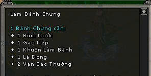 | Mở Bánh Dầy + Bánh Chưng Nhận Được Các vật Phẩm Random như Sau | Huyền Tinh , Bạc Thường , Bạc Khóa , Đồng Khóa , EXP |